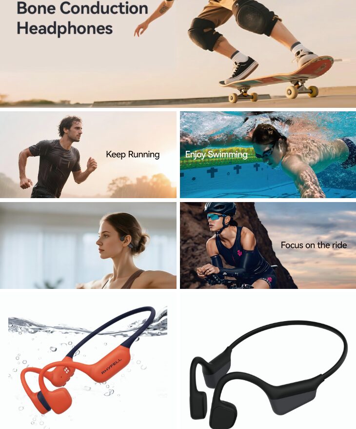 Rhyfell bone conduction headphones offer an open‑ear design that keeps you aware of your surroundings while delivering clear audio through cheekbone vibration, making them ideal for running, cycling, and swimming. With features like Bluetooth 5.4, IP68 waterproofing, and built‑in 32GB MP3 storage, they’re built for both everyday workouts and underwater listening. Their lightweight, secure fit makes them a practical choice for active users who want comfort without sacrificing performance.